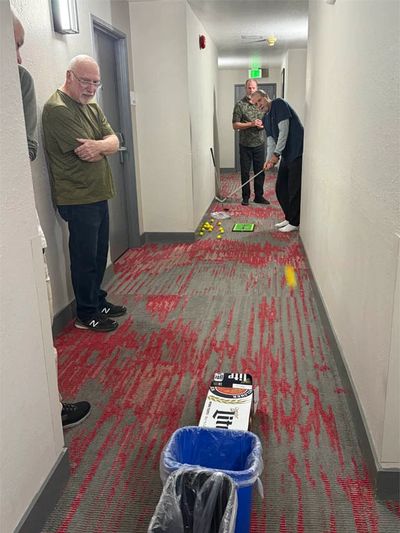 Rick encouraged Laurie to call Holly Channel to change the date of our fishing day as it was continuing to snow heavily. If we can't fish Monday, it was suggested we hold a golf tournament in the hotel hallway and get together in the evenings to watch the World Series.